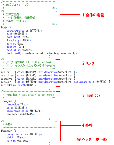 メインコンテンツエリアの背景色、文字サイズと文字色 |