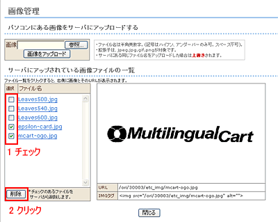 1.ファイル一覧より削除したい画像の選択欄にチェックをつけてください。(複数選択可能)