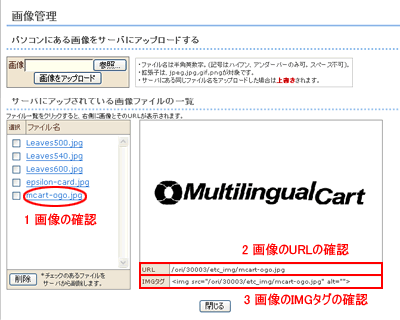 商品画像以外の画像ファイル管理を行います。