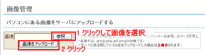 2.[アップロード]ボタンをクリックすると画像がサーバにアップされます。