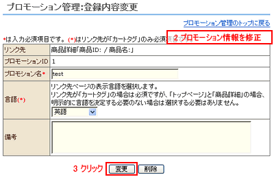 入力ミスなどでプロモーション情報が間違っていたら、こちらから変更します。